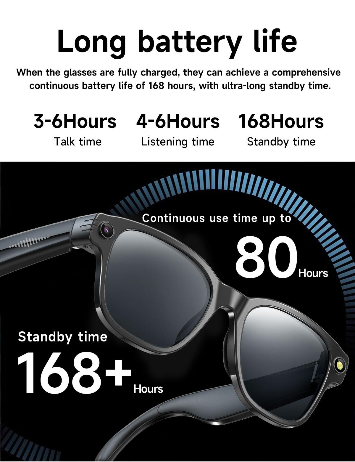 Battery & Long Endurance: Powered by a 270mAh battery and low-power chip for extended usage. Supports 1-2 days of moderate use (several photos, multiple translations, 1-2 hours of music playback, and calls). Longer endurance under light usage.