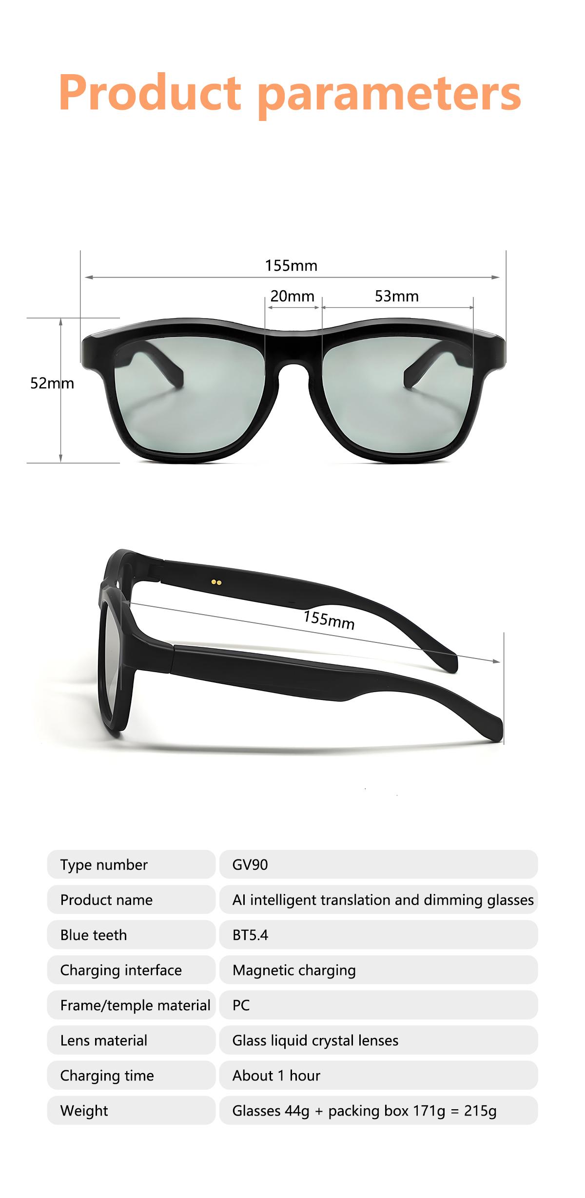 The glasses are equipped with liquid crystal variable light lenses. By touching the glasses temple, the color of the lenses can be changed, effectively blocking ultraviolet rays.